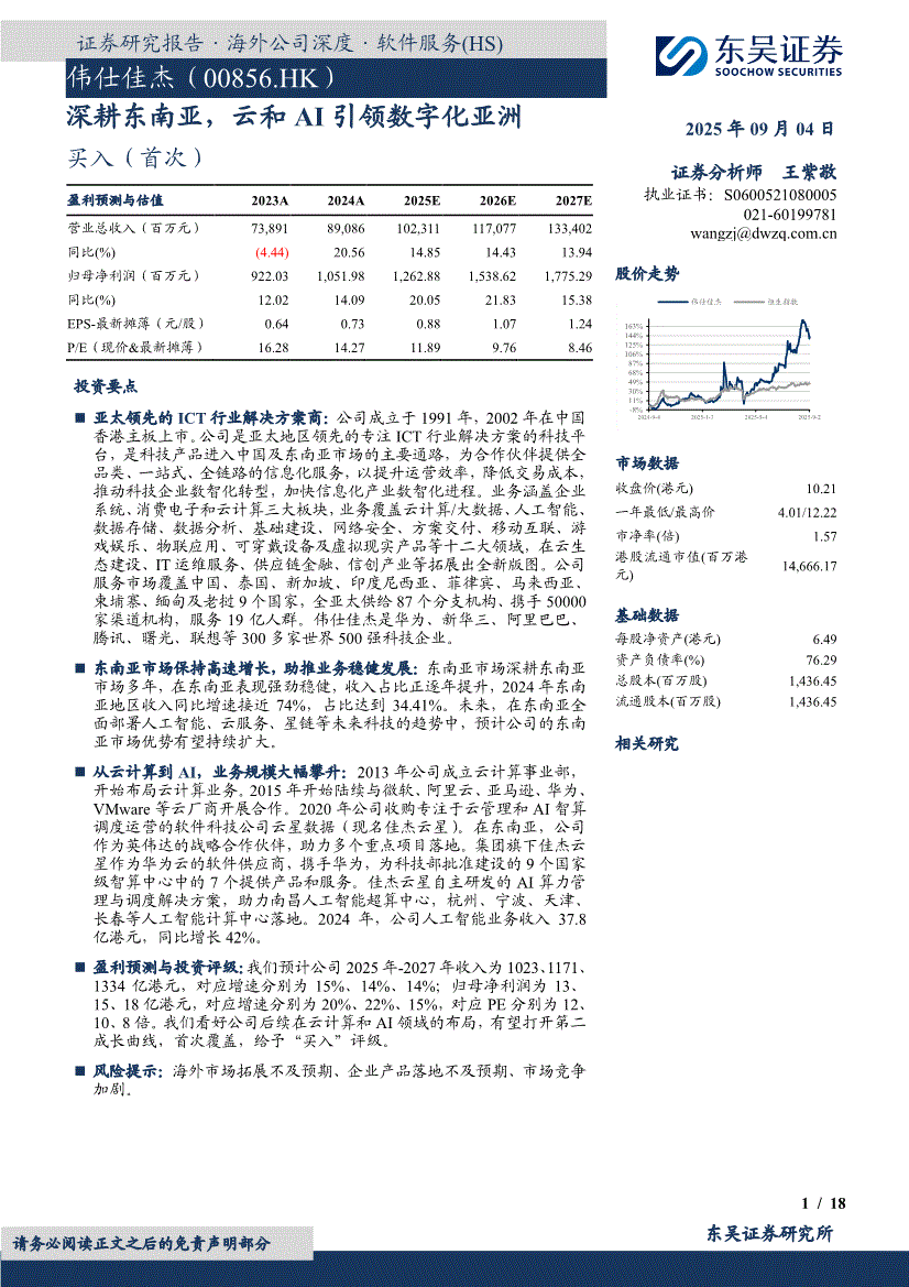 伟仕佳杰:东吴证券-伟仕佳杰-0856.HK-深耕东南亚,云和AI引领数字化亚洲-250904