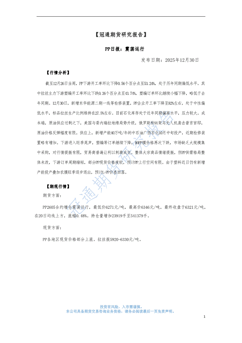 冠通期货-PP日报:震荡运行-251230