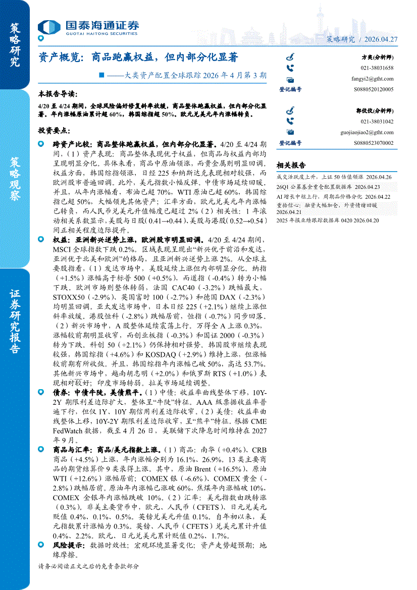 国泰海通证券-大类资产配置全球跟踪2026年4月第3期:资产概览,商品跑赢权益,但内部分化显著-260427