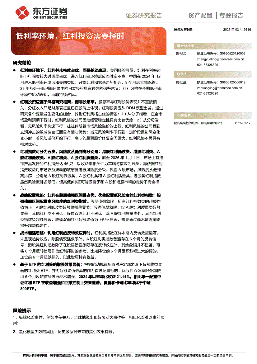 东方证券-资产配置|专题报告:低利率环境,红利投资需要择时-260226