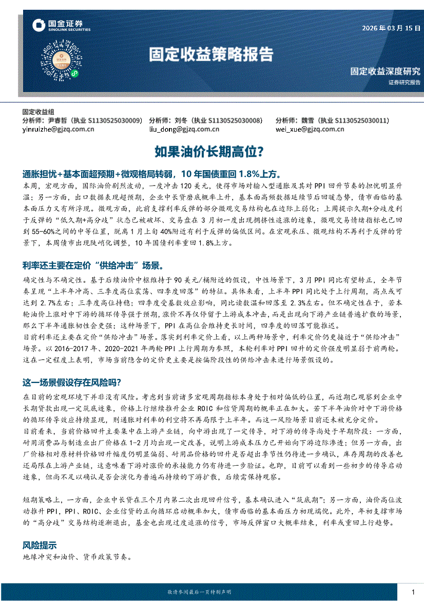 国金证券-固定收益策略报告:如果油价长期高位?-260315