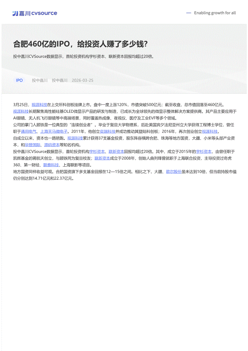 投中嘉川-合肥460亿的IPO,给投资人赚了多少钱?-260325