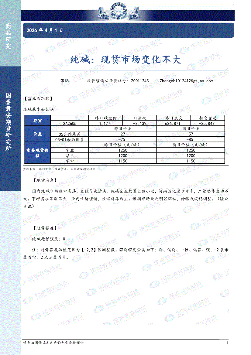 国泰君安期货-纯碱:现货市场变化不大-260401