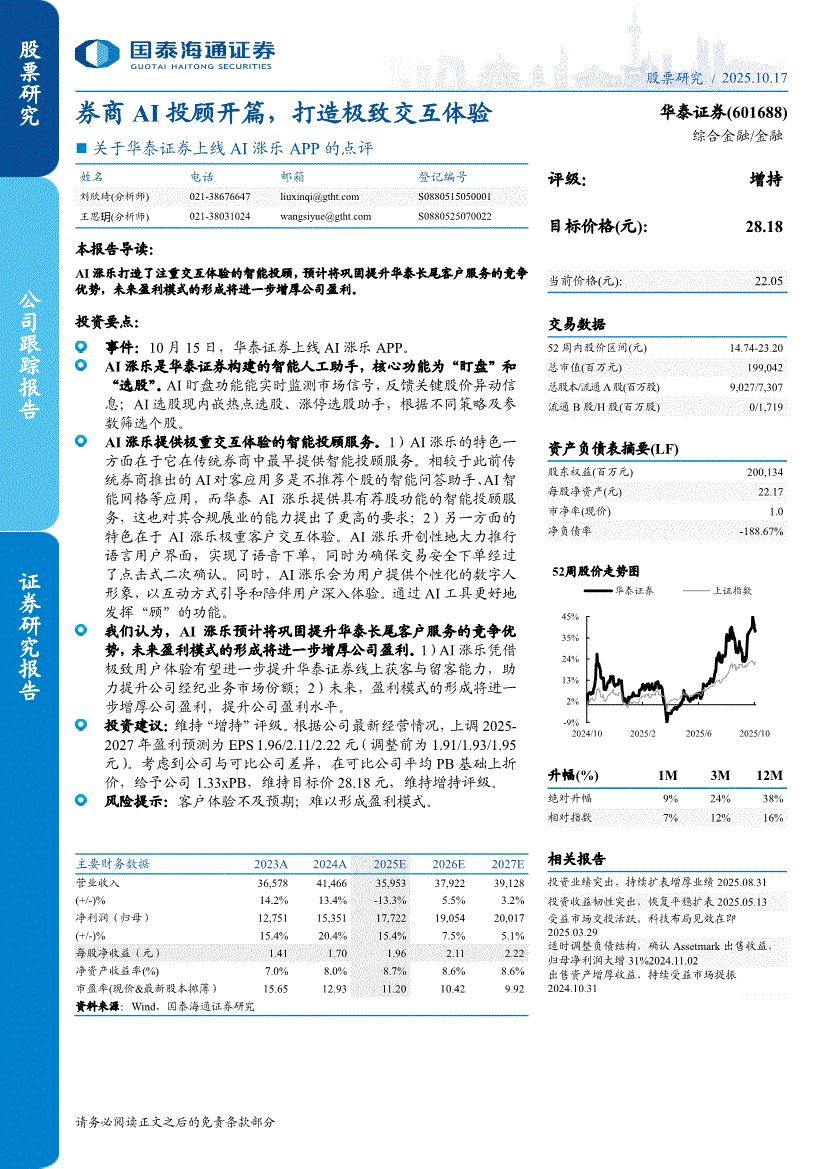 华泰证券:国泰海通证券-华泰证券-601688-关于华泰证券上线AI涨乐APP的点评:券商AI投顾开篇,打造极致交互体验-251017