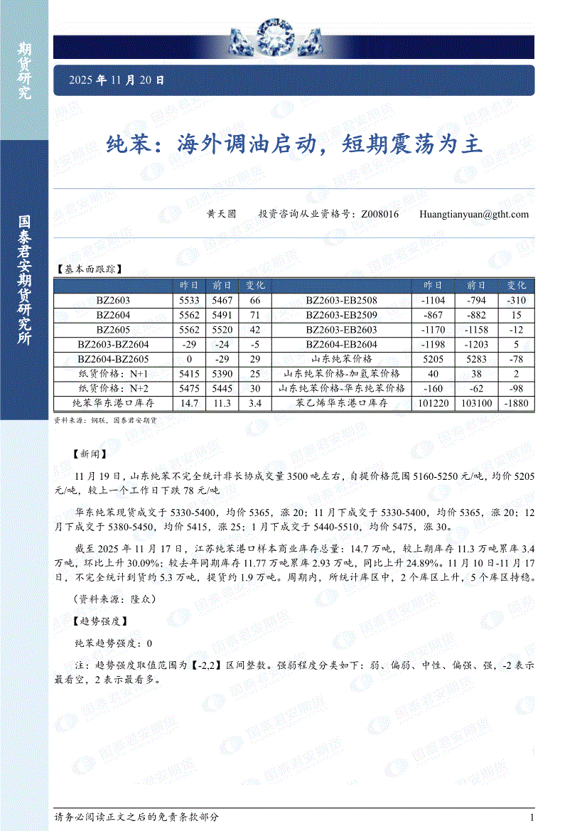 国泰君安期货-纯苯、苯乙烯周报-251116