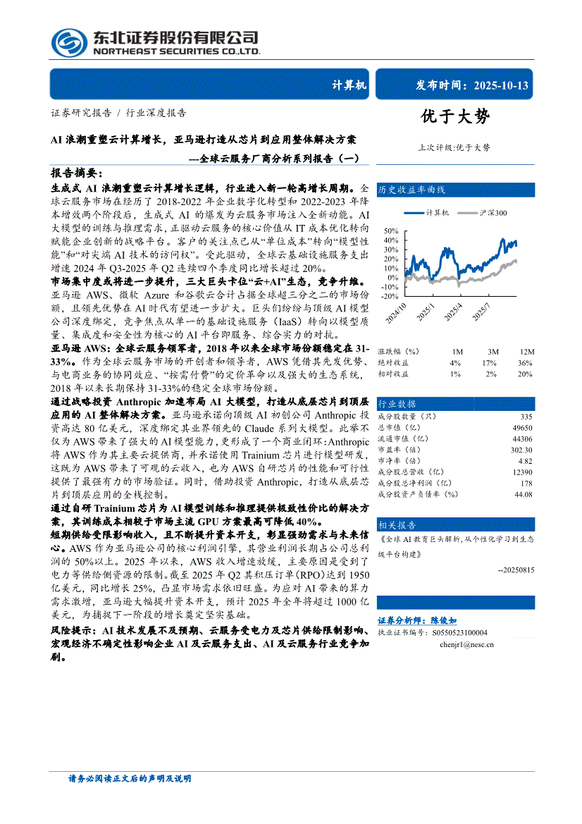 计算机行业:东北证券-计算机行业全球云服务厂商分析系列报告(一):AI浪潮重塑云计算增长,亚马逊打造从芯片到应用整体解决方案-251013