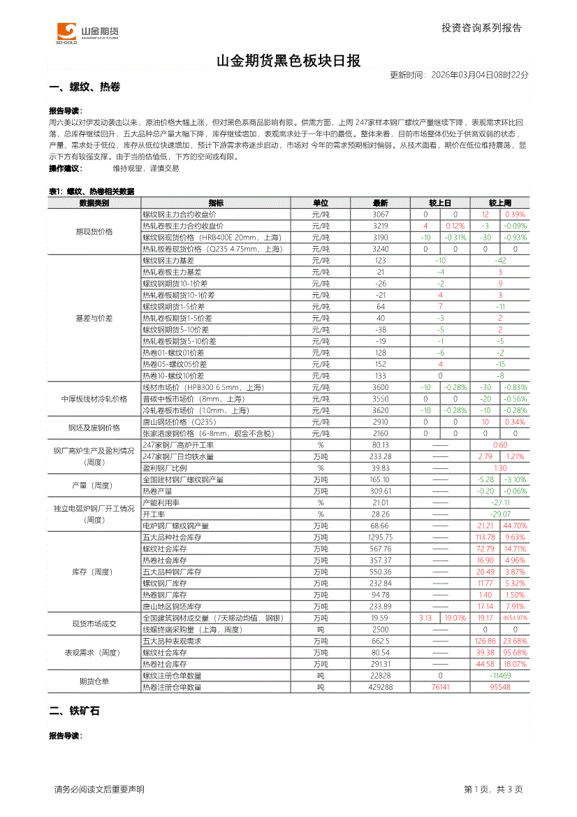 山金期货-黑色板块日报-260303