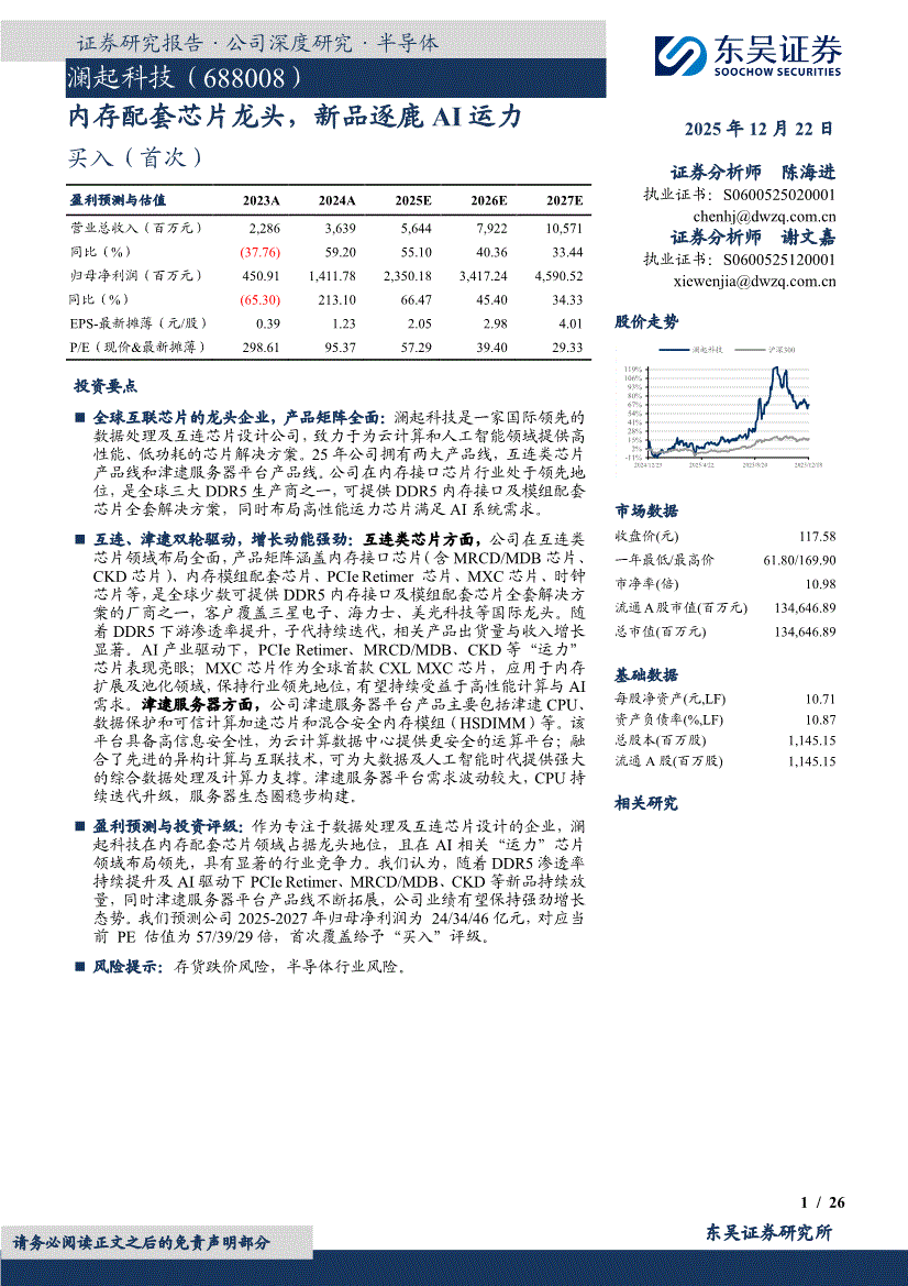 澜起科技:东吴证券-澜起科技-688008-内存配套芯片龙头,新品逐鹿AI运力-251222