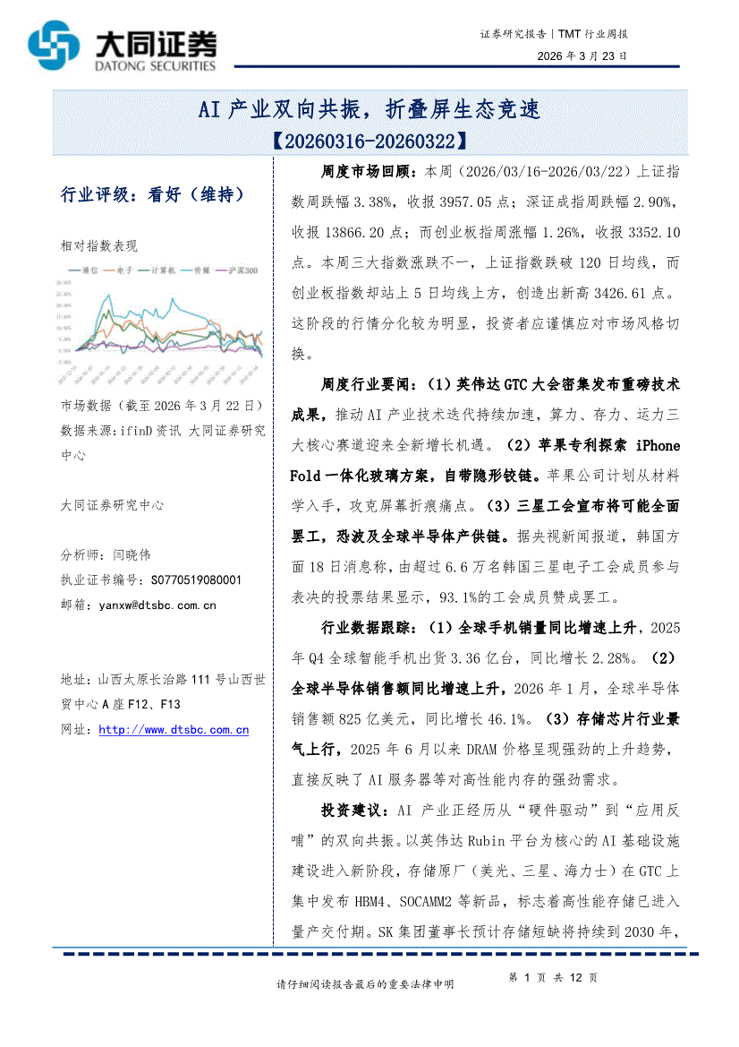 TMT行业:大同证券-TMT行业周报:AI产业双向共振,折叠屏生态竞速-260323