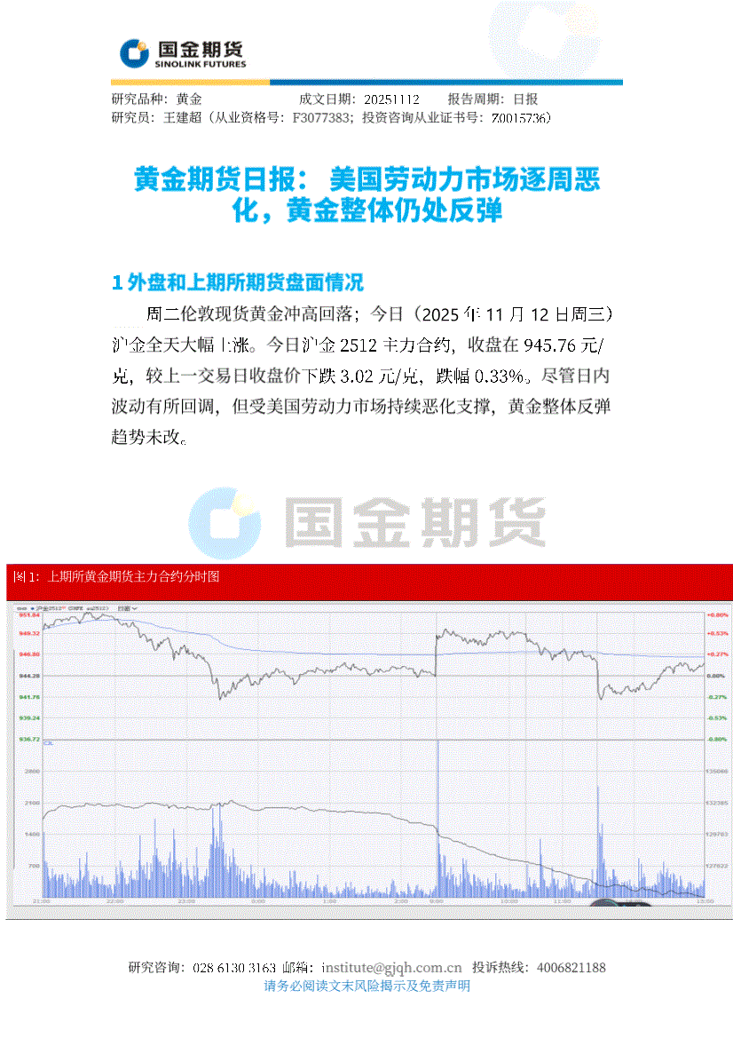 国金期货-黄金期货日报:美国劳动力市场逐周恶化,黄金整体仍处反弹-251112
