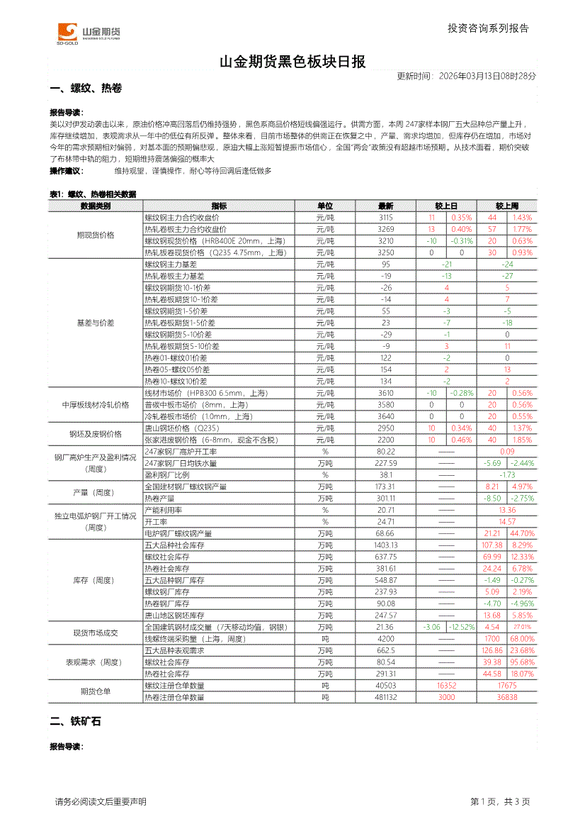 山金期货-黑色板块日报-260313