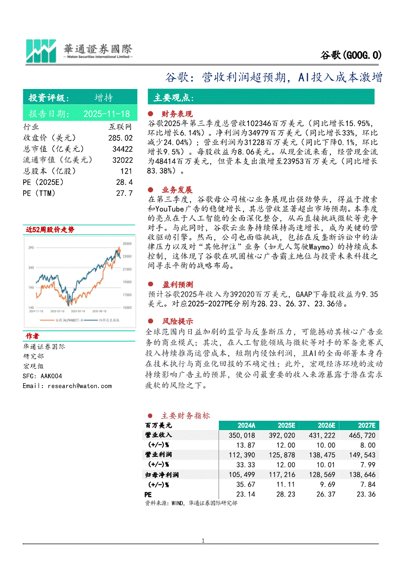 谷歌:华通证券国际-谷歌-GOOG.US-营收利润超预期,AI投入成本激增-251118
