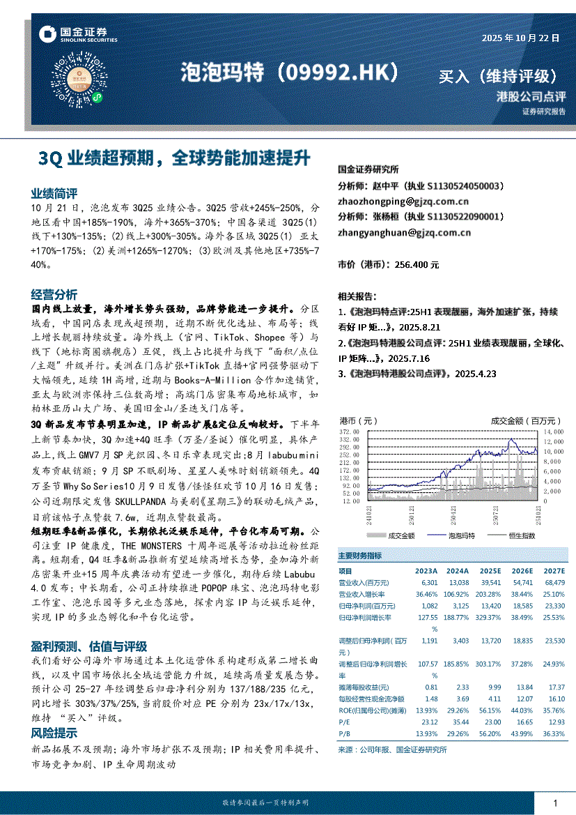 泡泡玛特:国金证券-泡泡玛特-9992.HK-3Q业绩超预期,全球势能加速提升-251022