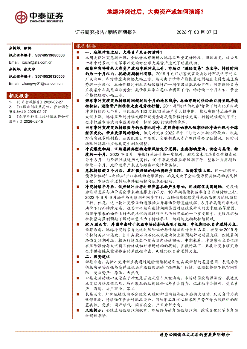 中泰证券-地缘冲突过后,大类资产或如何演绎?-260307