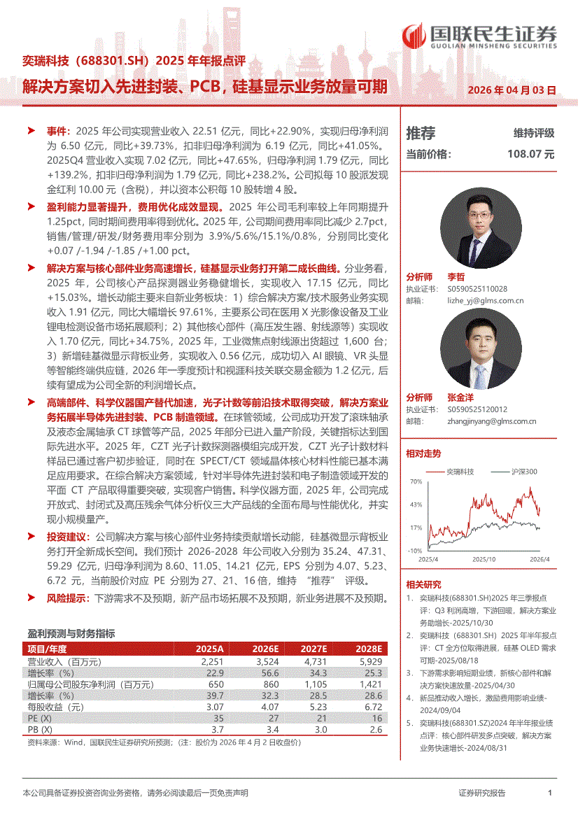 奕瑞科技:国联民生证券-奕瑞科技-688301-2025年年报点评:解决方案切入先进封装、PCB,硅基显示业务放量可期-260403