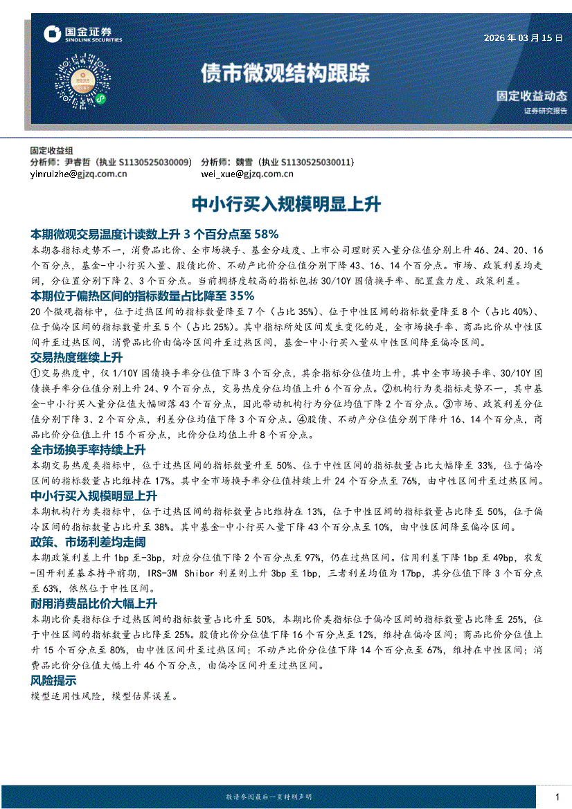 国金证券-债市微观结构跟踪:中小行买入规模明显上升-260315