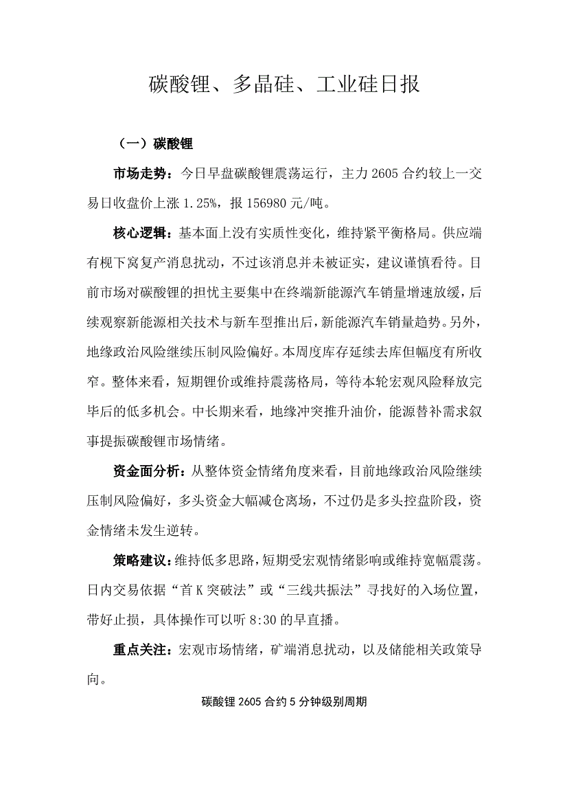 天富期货-碳酸锂、工业硅、多晶硅日报-260305