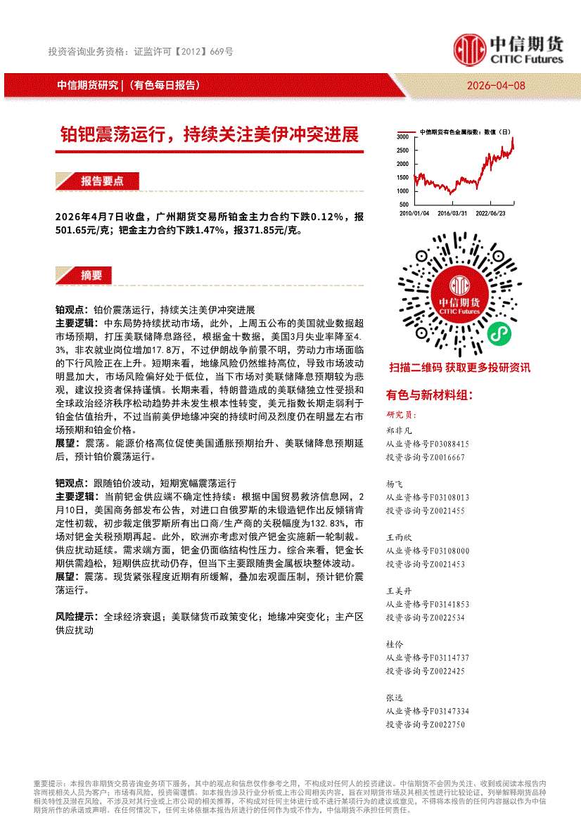中信期货-有色每日报告:铂钯震荡运行,持续关注美伊冲突进展-260408