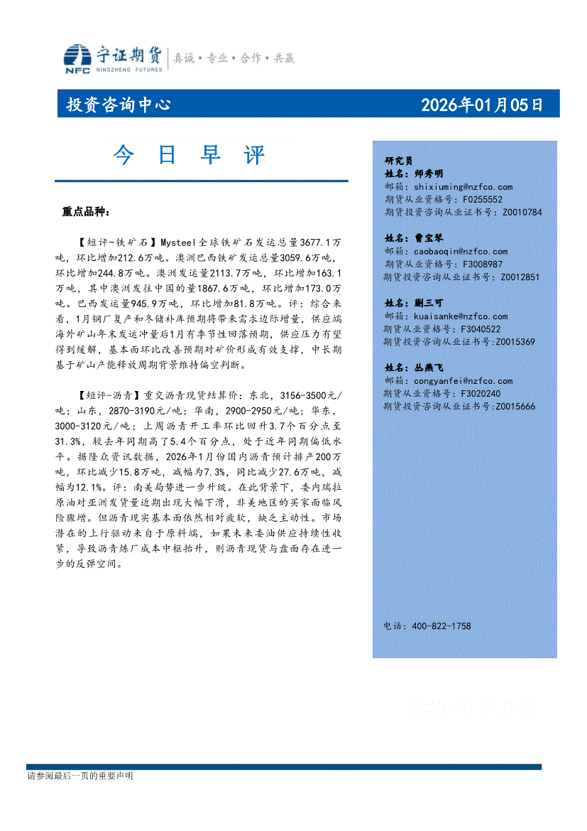 宁证期货-今日早评-260105