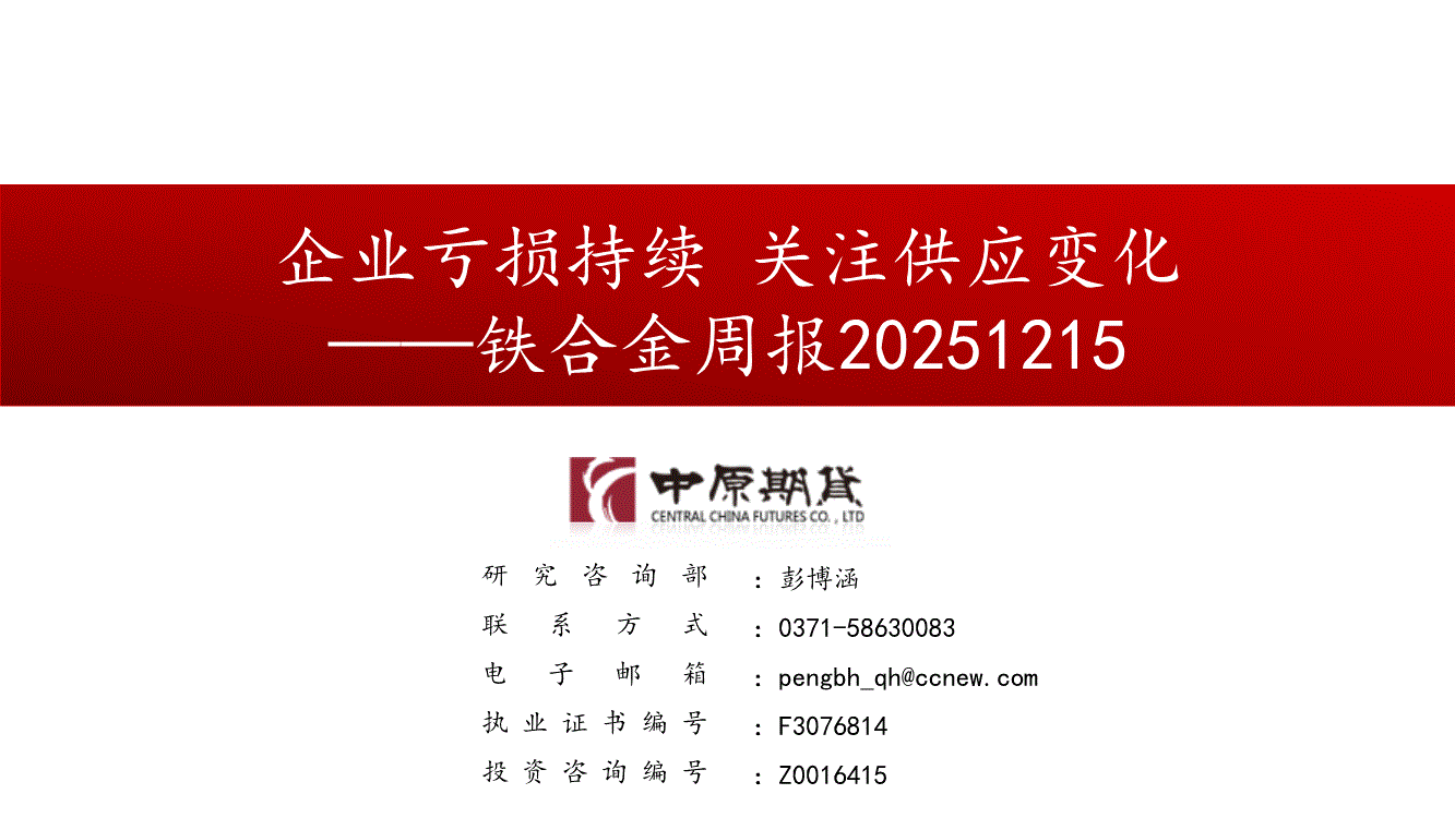 中原期货-铁合金周报:企业亏损持续,关注供应变化-251215