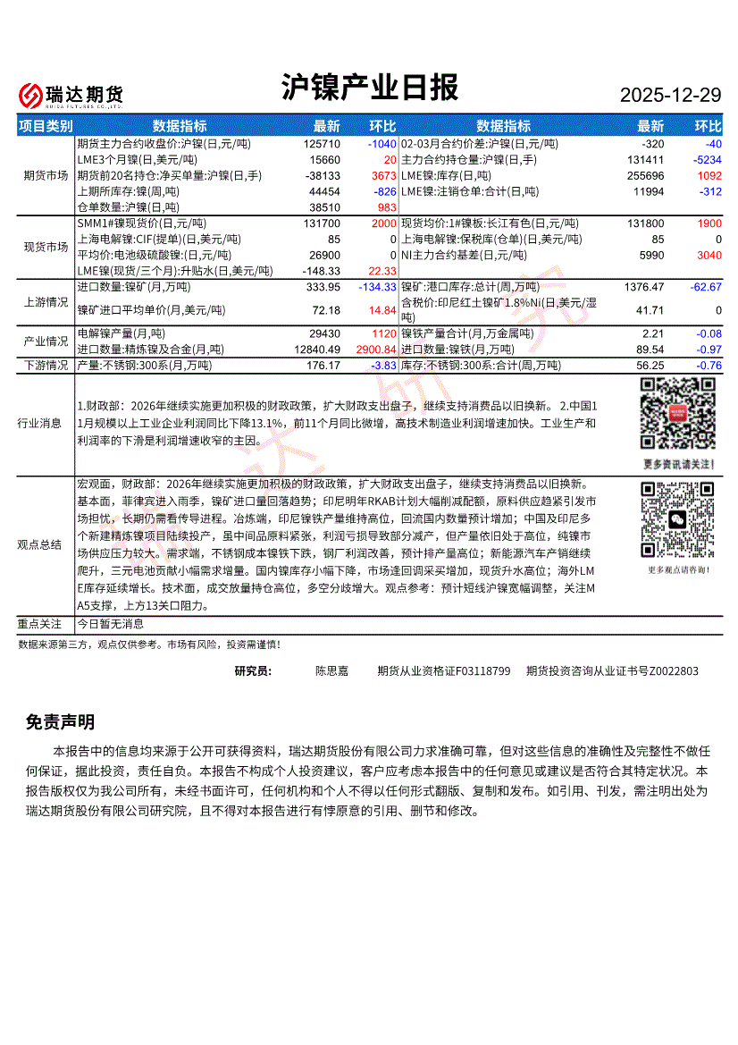 瑞达期货-沪镍产业日报-251229
