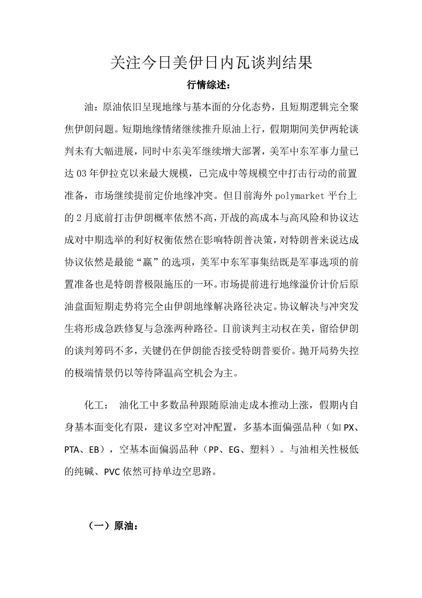 天富期货-关注今日美伊日内瓦谈判结果-260226
