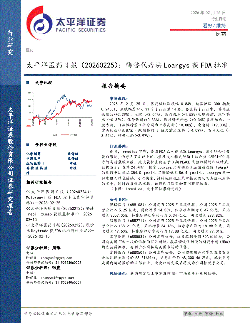 医药行业:太平洋证券-医药行业日报:酶替代疗法Loargys获FDA批准-260225