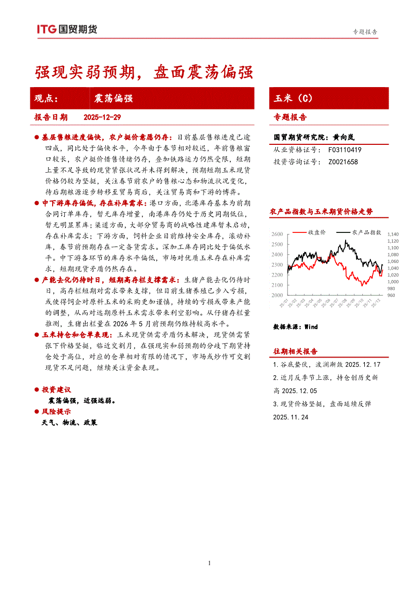 国贸期货-玉米(C)专题报告:强现实弱预期,盘面震荡偏强-251229