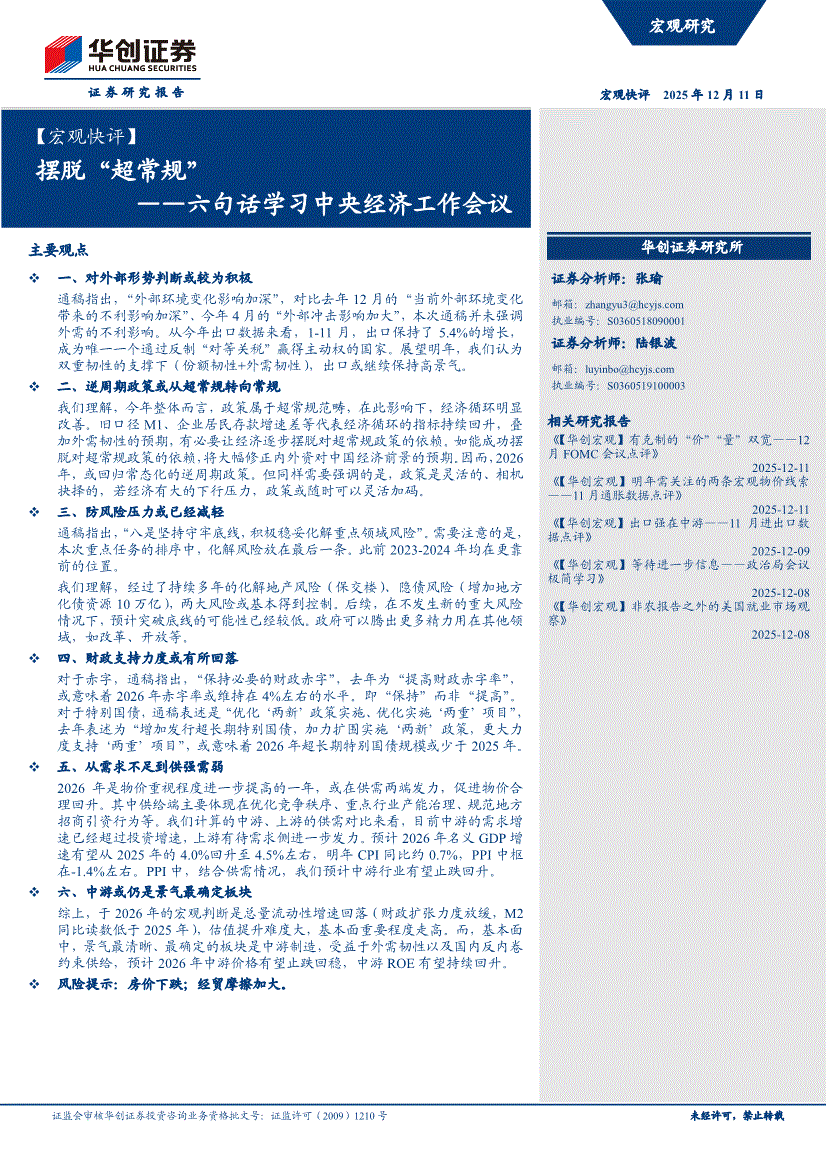 华创证券-【宏观快评】摆脱“超常规”——六句话学习中央经济工作会议-251211