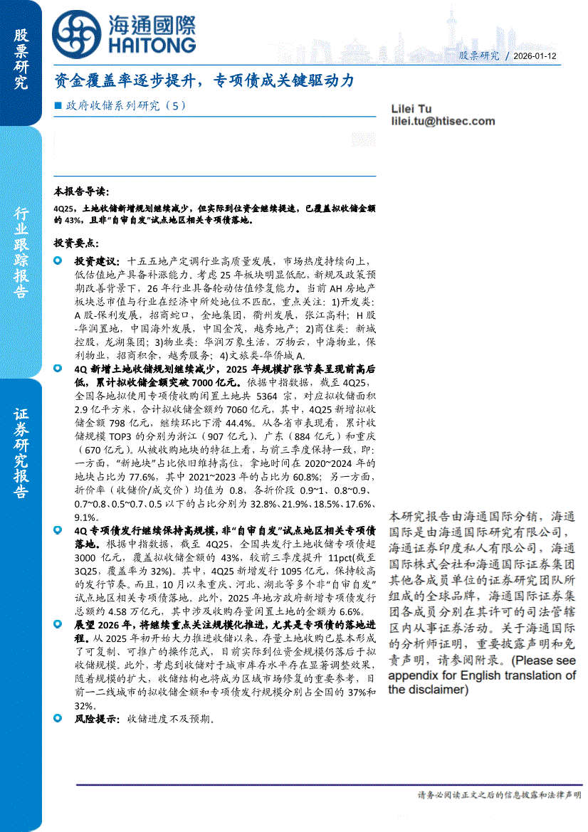 房地产行业:海通国际-房地产行业政府收储系列研究(5):资金覆盖率逐步提升,专项债成关键驱动力-260112