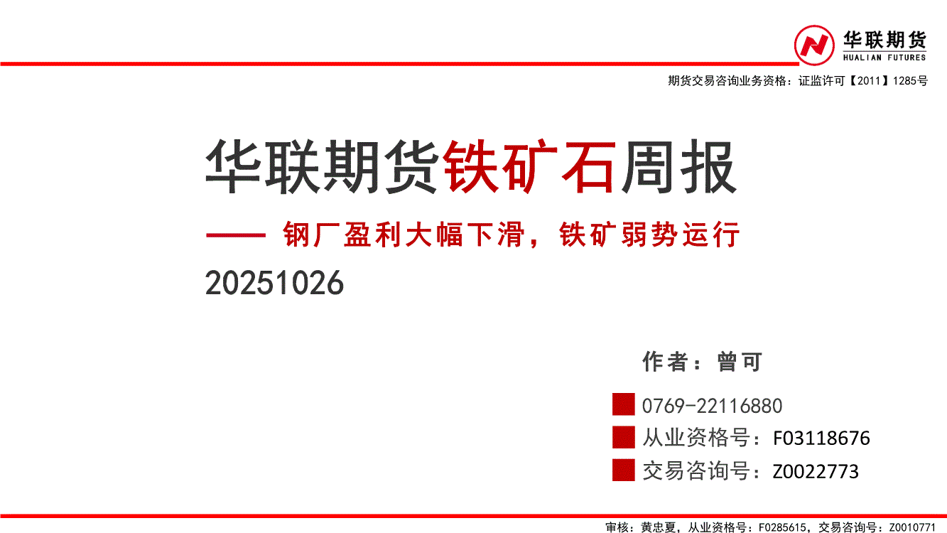 华联期货-铁矿石周报:钢厂盈利大幅下滑,铁矿弱势运行-251026