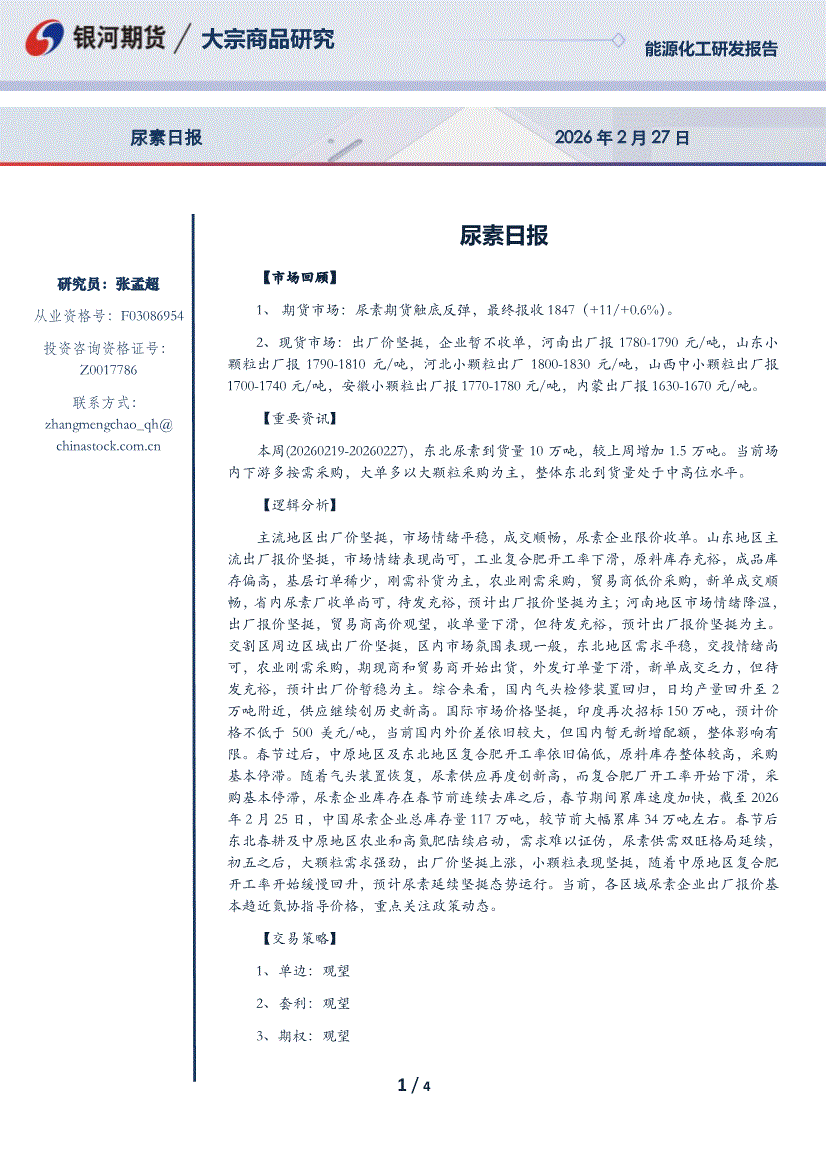 银河期货-尿素期货日报-260227