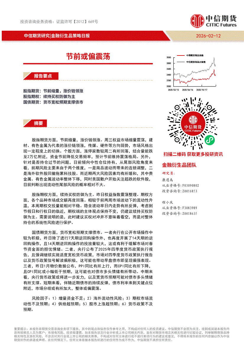 中信期货-金融衍生品策略日报:节前或偏震荡-260212