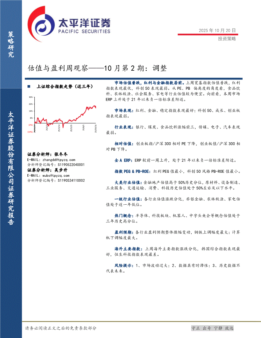 太平洋证券-估值与盈利周观察:10月第2期,调整-251020