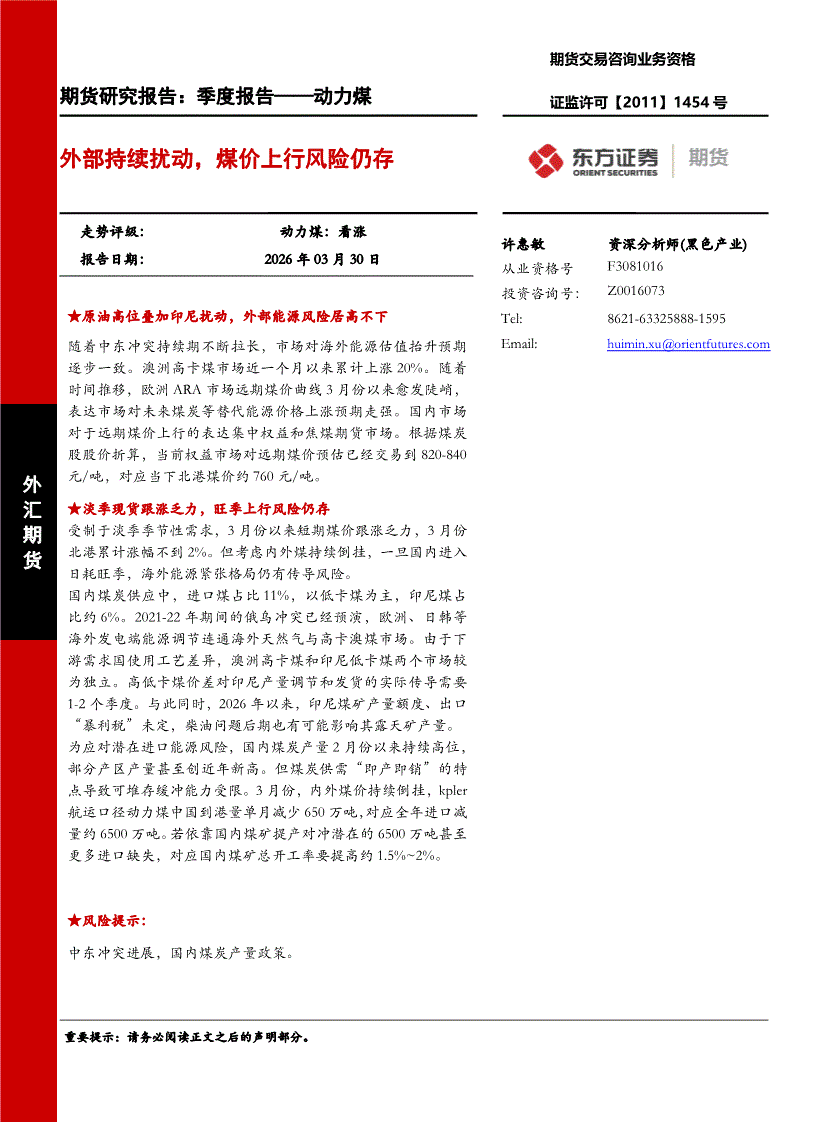 东证期货-动力煤季度报告:外部持续扰动,煤价上行风险仍存-260330