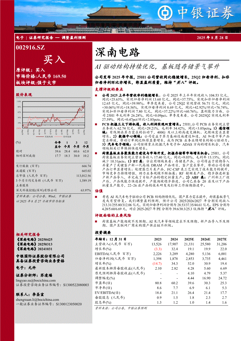 深南电路:中银国际-深南电路-002916-AI驱动结构持续优化,基板随存储景气攀升-250828