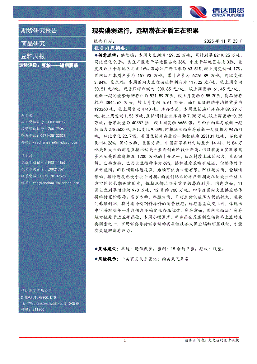 信达期货-豆粕周报:现实偏弱运行,远期潜在矛盾正在积累-251123