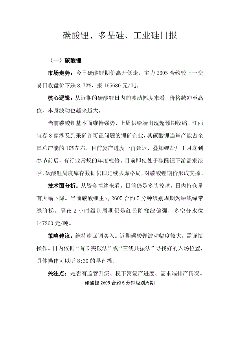 天富期货-碳酸锂、多晶硅、工业硅日报-260203