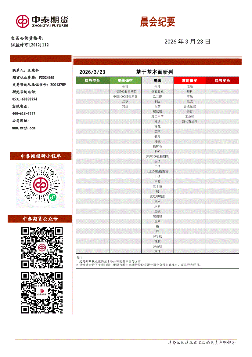 中泰期货-晨会纪要-260323