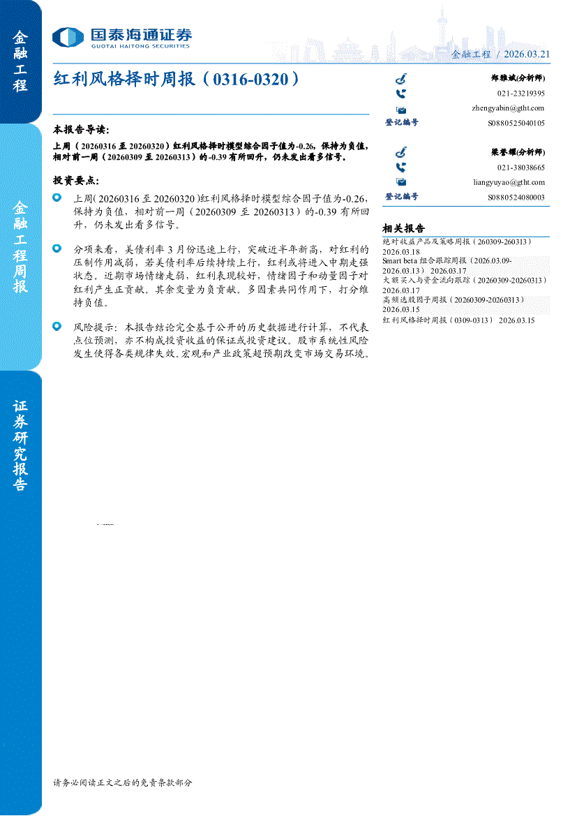 国泰海通证券-红利风格择时周报-260321