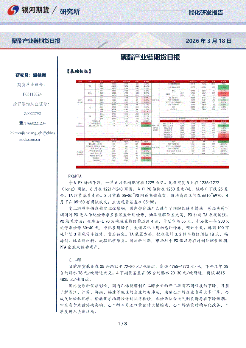 银河期货-聚酯产业链期货日报-260318