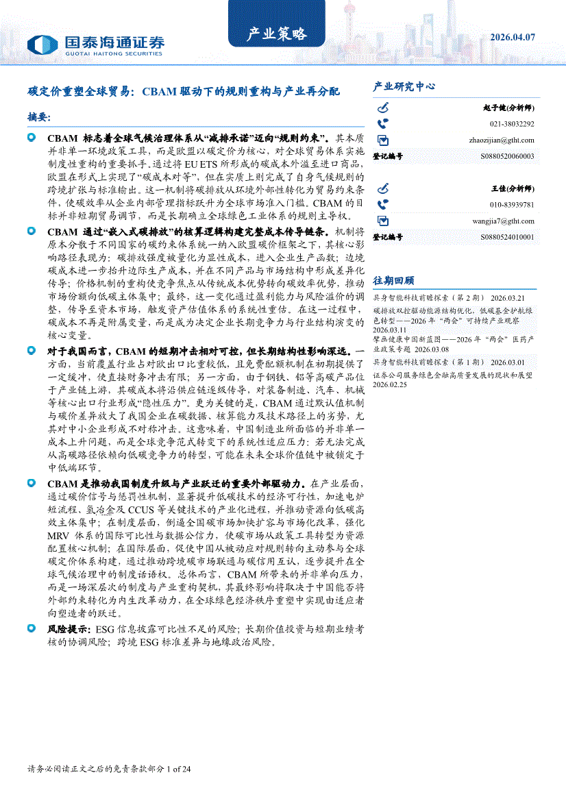 国泰海通证券-产业策略:碳定价重塑全球贸易,CBAM驱动下的规则重构与产业再分配-260407