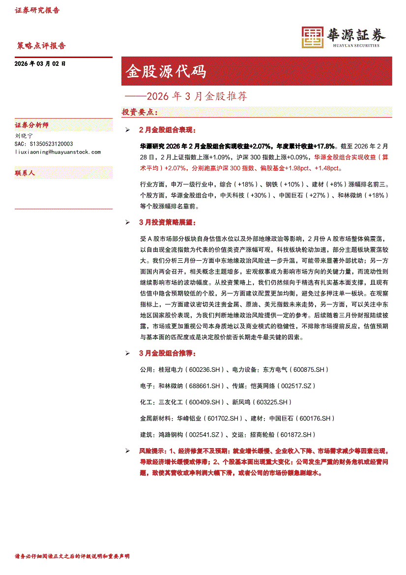华源证券-2026年3月金股推荐:金股源代码-260302