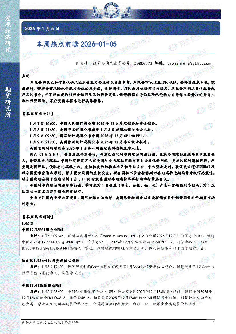 国泰君安期货-本周热点前瞻-260105