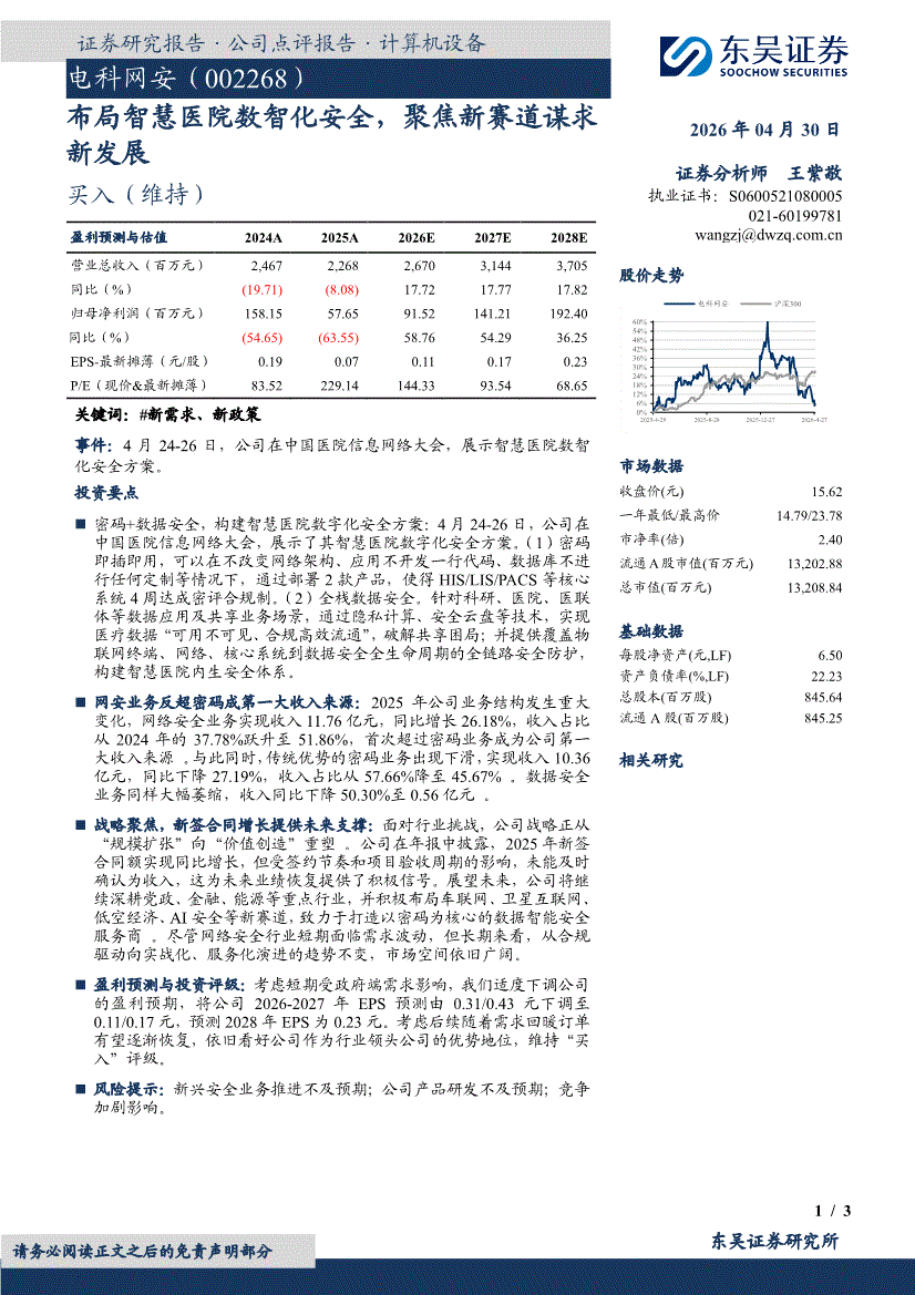 电科网安:东吴证券-电科网安-002268-布局智慧医院数智化安全,聚焦新赛道谋求新发展-260430