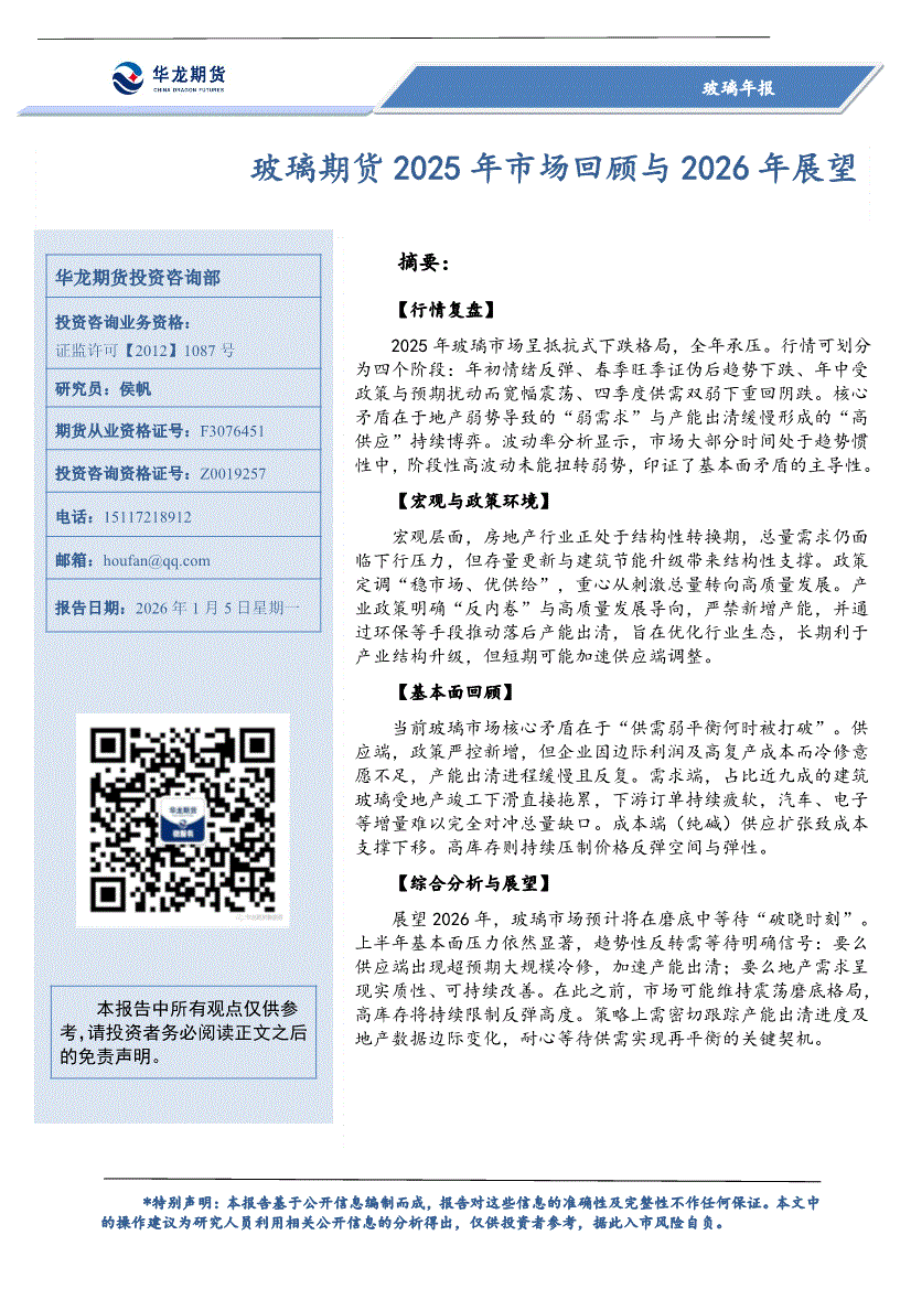 华龙期货-玻璃年报:玻璃期货2025年市场回顾与2026年展望-260105