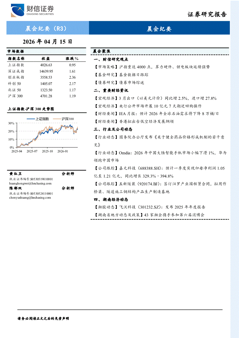 财信证券-晨会纪要-260415