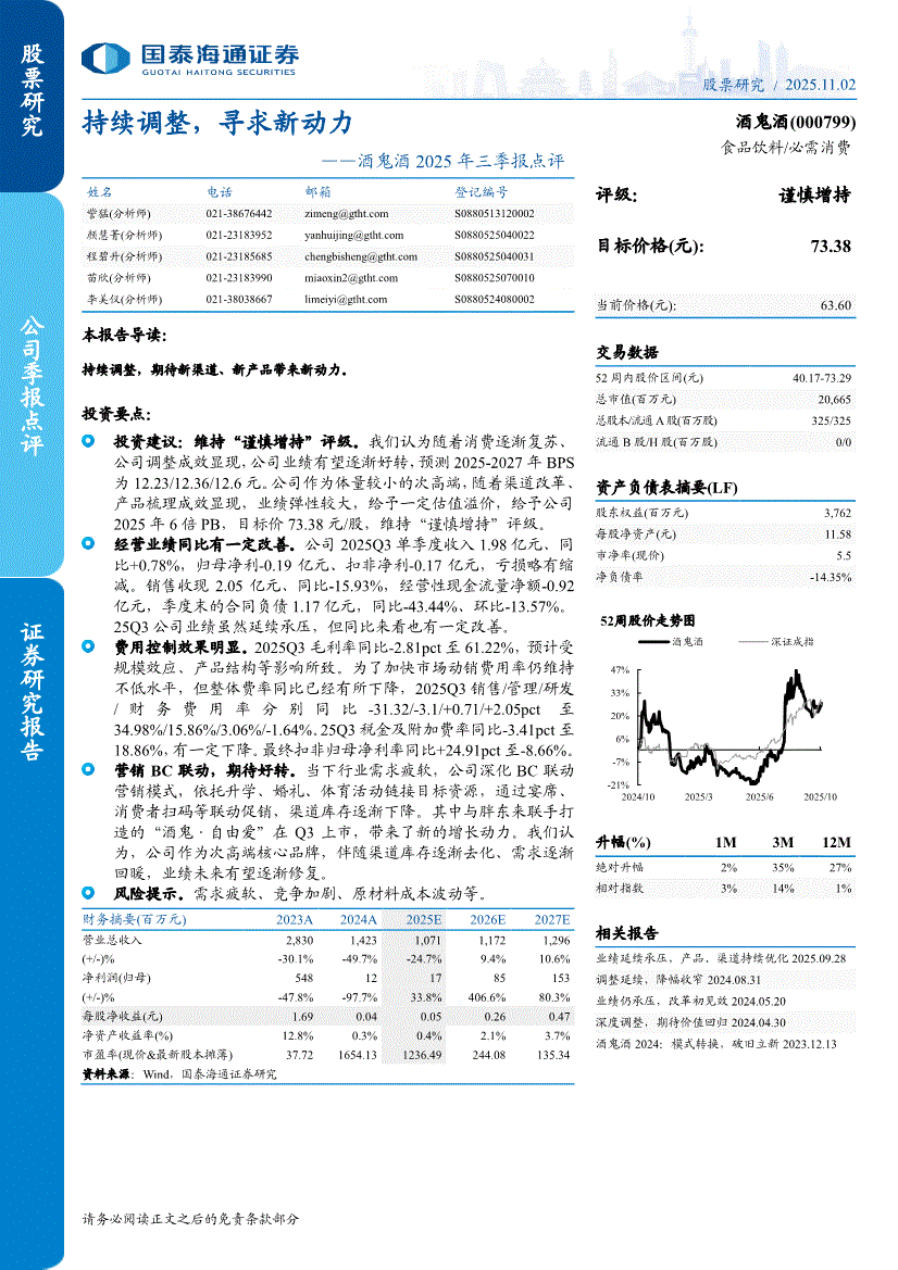酒鬼酒:国泰海通证券-酒鬼酒-000799-2025年三季报点评:持续调整,寻求新动力-251102