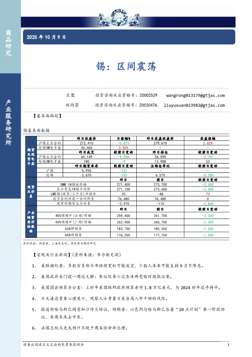 国泰君安期货-有色及贵金属日度数据简报-251014