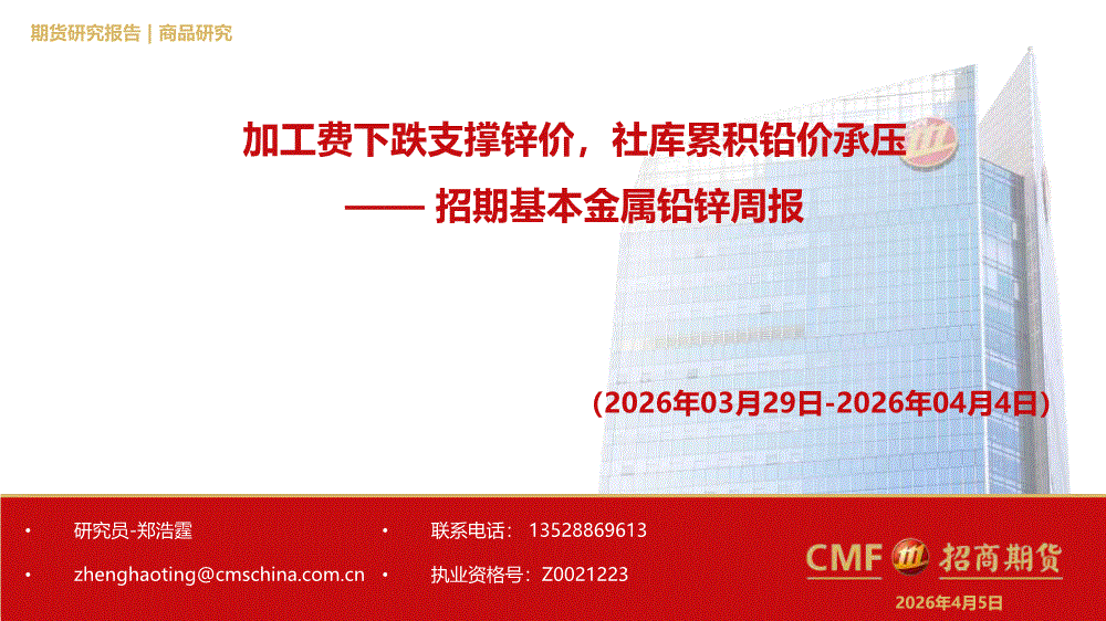 招商期货-招期基本金属铅锌周报:加工费下跌支撑锌价,社库累积铅价承压-260405